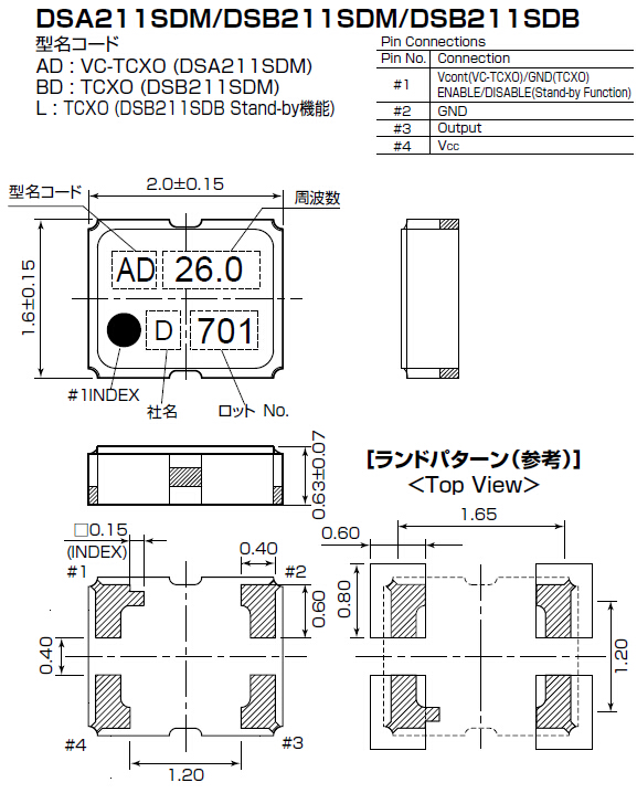 | 消費電流 | +1.5 mA max(. f≦26MHz)/ +2.0 mA max(. f>26MHz) | |||