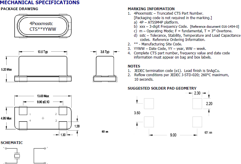 CTS晶振,貼片晶振,ATS-ATSSM4P晶振,歐美無(wú)源晶振普通貼片石英晶振外觀使用金屬材料封裝的,具有高穩(wěn)定性,高可靠性的石英晶體諧振器,晶振外觀本身使用金屬封裝,充分的密封性能,可確保其高可靠性,采用編帶包裝,外包裝采用朔膠盤(pán),可在自動(dòng)貼片機(jī)上對(duì)應(yīng)自動(dòng)貼裝等優(yōu)勢(shì)。