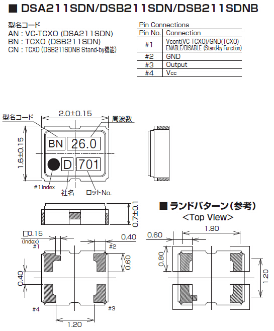 壓控溫補(bǔ)晶振DSA211SDN,KDS無限通訊設(shè)備晶振,有源晶體振蕩器,2016mm體積的壓控溫補(bǔ)晶振(VC-TCXO),是目前有源晶振中體積最小的一款,產(chǎn)品本身帶溫度補(bǔ)償作用的石英晶體振蕩器,該體積產(chǎn)品最適合于GPS,以及衛(wèi)星通訊系統(tǒng),智能電話等多用途的高穩(wěn)定的頻率溫度特性晶振.為對(duì)應(yīng)低電源電壓的產(chǎn)品.(DC+1.8V ± 0.1V to +2.9V ± 0.1V 對(duì)應(yīng)IC可能) 高度:最高0.8 mm,體積:0.0022 cm3,重量:0.008 g,超小型,輕型,低消耗電流,表面貼片型產(chǎn)品.(可對(duì)應(yīng)回流焊)無鉛產(chǎn)品.滿足無鉛焊接的高溫回流溫度曲線要求,帶有AFC(頻率控制)功能,Enable/Disable功能,產(chǎn)品本身可根據(jù)使用需要進(jìn)行選擇.