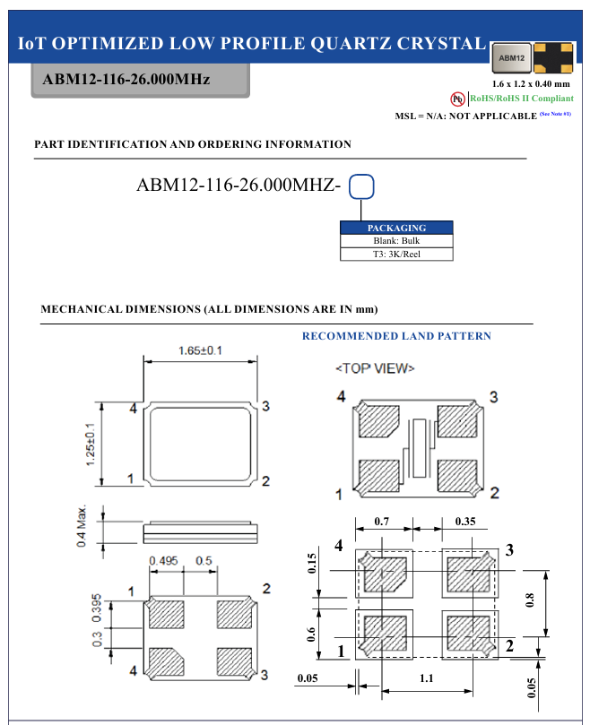 更多>>艾博康Abracon晶振ABM12-116-26.000MHZ-T3 1612
