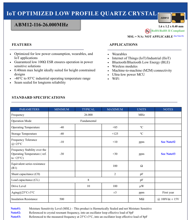晶振撬動智能新時代當可穿戴設備精準監(jiān)測健康數(shù)據(jù),當物聯(lián)網(wǎng)設備實現(xiàn)遠程智能控制,當藍牙模塊無縫傳輸信息,這些智能場景的背后,都離不開一個核心元器件——晶振.美國艾博康(Abracon晶振)推出的ABM12-116-26.000MHZ-T3晶振,以其卓越性能成為低功耗智能設備的“心臟”,彰顯著方寸之間的科技力量.