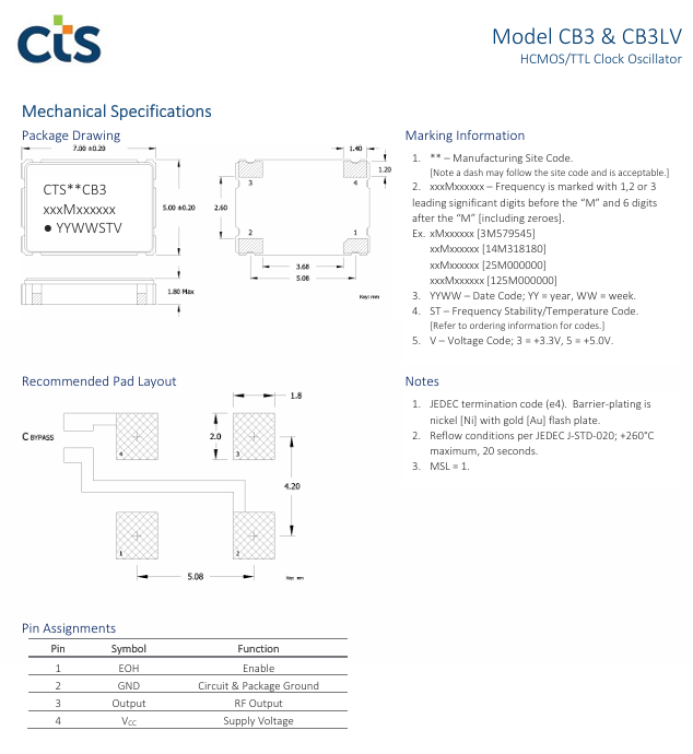 CB3LV-3I-50M000000美國(guó)CTS西迪斯 四腳7050 50M XO HCMOS TTL 3.3V 50PP -40+85