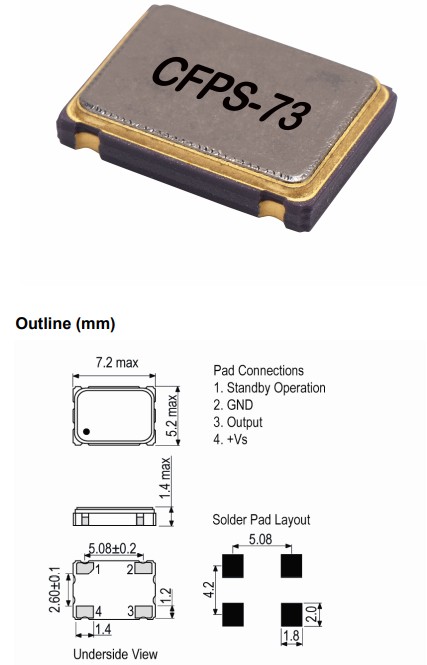 更多>>CFPS-73陶瓷封裝的標(biāo)準(zhǔn)7050mm晶體振蕩器