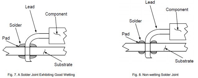 來自器件引線或端子的活性焊劑.當(dāng)污染物沒有被適當(dāng)?shù)貜?br /> 器件的焊盤和/或引線會發(fā)生去濕.去濕的特征在于
