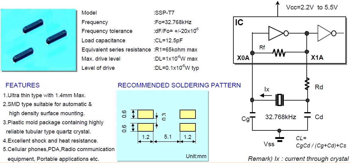 精工石英晶振相關(guān)型號與IC的匹配模式: