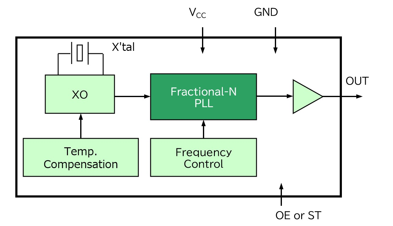 利用愛普生的新型內(nèi)部IC(在125MHz的情況下)實現(xiàn)1.1ps的典型相位抖動(12kHz至20MHz)
