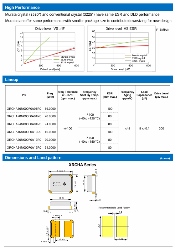 更多>>XRCHA16M000F0A12R0日本村田車(chē)規(guī)晶振2520 16M 8PF
